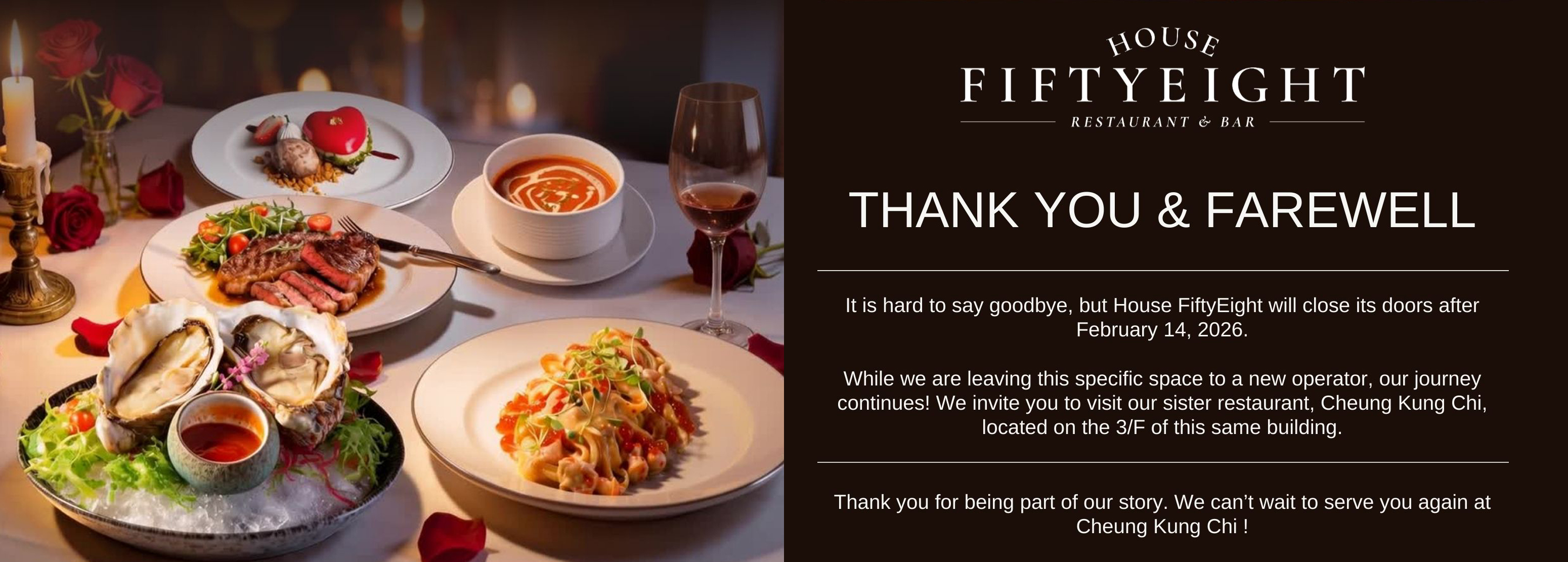 House FiftyEight is part of CKK CAFÉ LIMITED Opening HoursMonday to Saturday 12:00-22:00Sunday (Event & party available) Booking(852)8118 3888 / WhatsApp: 5282 3888Make a reservation |